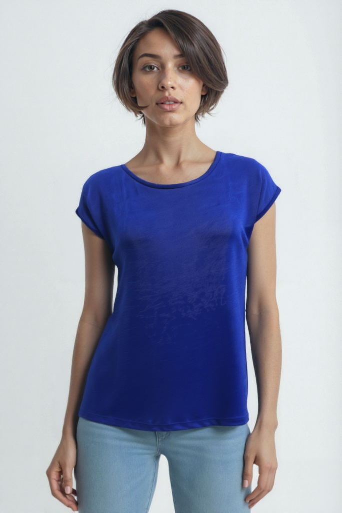 Koyu Mavi Bisiklet Yaka Pamuklu Kadın Kısa Kollu T-Shirt BETTY O-NECK TOP